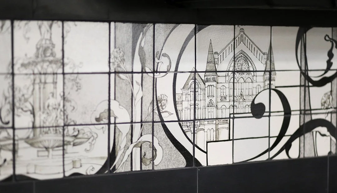Handpainted tile. 20 h x 269” l